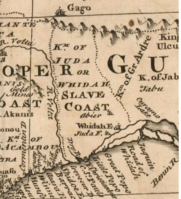 That region, located in what is now southern Benin, was the same place known in colonial records as the Slave Coast. The Kingdom of Whydah, also spelled Whidah or Juda, was a major hub of the Atlantic slave trade, exporting over a million Africans between the 1600s and 1800s (Wikipedia: Kingdom of Whydah). The label “Juda” directly connects to the tribe of Judah. European mapmakers recorded what they already knew from African oral traditions and local informants.
